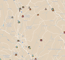 Über die Vollbildanzeige in der Karte (Symbol [ ] rechts oben anklicken) kann die Karte vergrößert und gezielt nach einzelnen Produktgruppen gesucht werden (an- und abhaken der gewünschten Produktgruppe). Durch Klicken auf einzelne Symbole lassen sich Details zum/r jeweiligen Anbieter/in öffnen (z.B. Standort, Öffnungszeiten, Kontaktdaten). Wird die Anwendung über ein mobiles Gerät geöffnet, ist auch eine Navigation zum gewünschten Standort möglich.